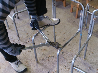 リベットはクリッパーで挟み、テコの原理で引き抜きます。