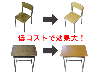 生徒用机・椅子を修理することで買い替えよりも低コストで更に10年寿命を延ばすことができます。